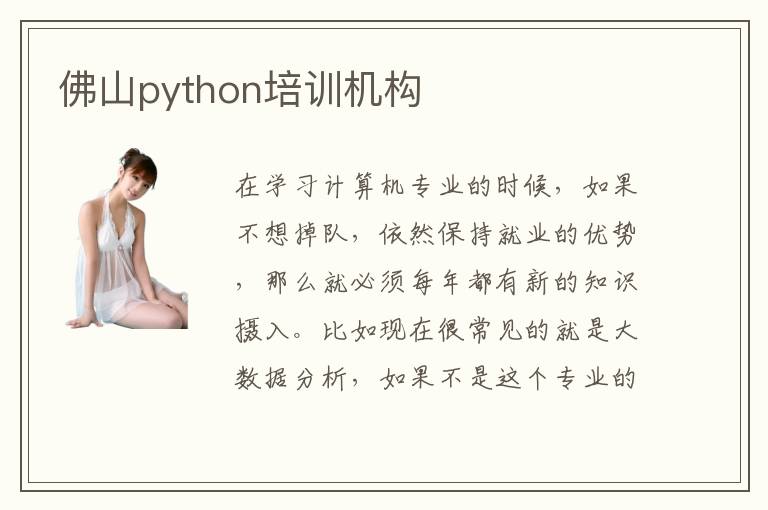 在学习计算机专业的时候,如果不想掉队,依然保持就业的优势,那么就必须每年都有新的知识摄入。比如现在很常见的就是大数据分析,如果不是这个专业的人,虽然不需要太过于深入,但还是要了解大概的作用特征等等。要是连这些都不了解可以到佛山python培训机构,提升教学的效果。那么这些培训机构效果如何呢?首先要看学校的教学成果,有些学校的成果比较丰硕,每年都有获奖的学生,学生也会针对自身的局限来弥补作用也比较明显。佛山python培训python培训机构如何,要看学生的教学质量,环境氛围,配备设施,教学模式等等,有些学校采用的是大小班的教学方法,一对一的指导,学生更加清楚了解自己的问题。佛山python培训机构资历也可以反映出教学的水平,要是资历比较深,排名靠前,应该是值得选择的。