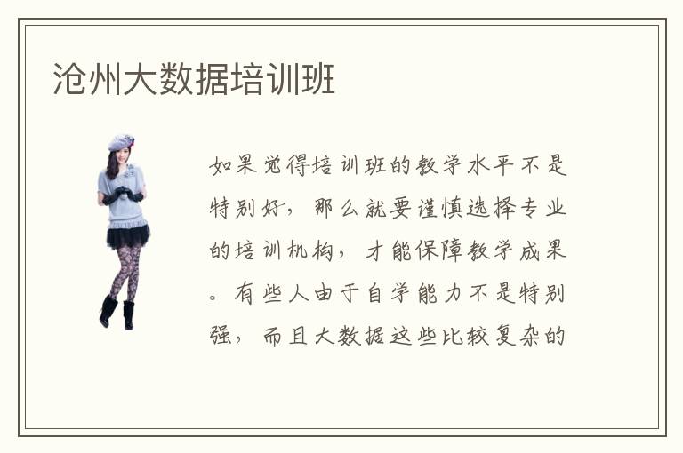 如果觉得培训班的教学水平不是特别好,那么就要谨慎选择专业的培训机构,才能保障教学成果。有些人由于自学能力不是特别强,而且大数据这些比较复杂的学科需要专业老师指导,才能节省时间和精力。那就要关注培训机构选择的方法,包括了解培训机构的教学模式,专业成果以及所需要花的费用和时间等等。沧州大数据培训班教学方法通常采用的是劳逸结合,大小班教学。老师的资源也不错,有一些学校都可以针对不同的学生来培养,所以总体来说拥有更好的优势,沧州大数据培训大数据培训班专业成果更加明显。沧州大数据培训班时间长不长,大概是一个月到两个月之间,当然要看个人的学习进度,还有学校的专业课程计划规划,有些学生平时工作或学习比较忙,可能要两三个学期才能够学完。