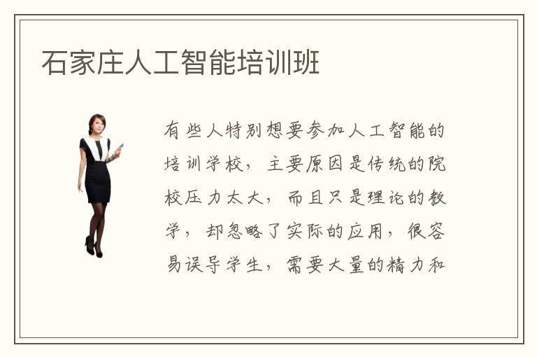 有些人特别想要参加人工智能的培训学校,主要原因是传统的院校压力太大,而且只是理论的教学,却忽略了实际的应用,很容易误导学生,需要大量的精力和时间才能够理解知识,却不能够运用到实际当中,对很多学生来说确实是非常不值得的。要是想改善这方面的问题,可以到人工智能培训学校提升专业水平。石家庄人工智能培训班多少钱,可能是要花3000到5000元左右,但这些只是一个大概的数字,有很多影响因素,老师水平不一样,专业基础存在差异,那么费用会存在不同。石家庄人工智能培训班怎么样挑选,首先要关注老师的水平,教学环境以及学生获奖情况,有些学校的资历还是相当不错的,具有丰富的经验。石家庄人工智能培训班优势明显吗,大多数培训班都有明显优势,更加注重实践和理论结合。