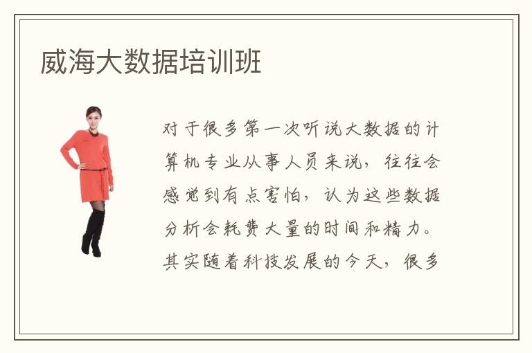 对于很多第一次听说大数据的计算机专业从事人员来说,往往会感觉到有点害怕,认为这些数据分析会耗费大量的时间和精力。其实随着科技发展的今天,很多数据分析已经应用到生活的方方面面,科学家会利用这些技术,让生活变得更加便利。威海大数据培训班有帮助吗,培训班的效果不一样,所以具体有没有帮助,要看每个学校的教学方法,师资力量以及教学成果和水平。威海大数据培训大数据培训班基础设施通常是比较完善的,如果学校缺乏这方面的配套,学生往往没有实训的基地,很难理解专业知识。威海大数据培训班优点在于大多数培训班都可以针对不同的学生培养,结合不同学生的理论条件,制定科学培养方案,让学生既能够提升理论知识,又可以掌握实践操作,在未来就业发展中更加顺畅。