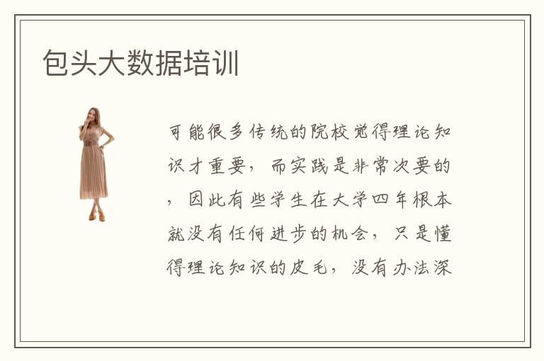 可能很多传统的院校觉得理论知识才重要,而实践是非常次要的,因此有些学生在大学四年根本就没有任何进步的机会,只是懂得理论知识的皮毛,没有办法深入了解可能存在的缺陷以及弥补的方法。却有学生想方设法突破瓶颈,到专业的培训机构上学,得到更多实践和提升的可能。包头大数据培训专业水平大多数都还不错,有些专业水平比较先进的,可以针对学生的局限调整,为学生设置大量的培训方案,改善学生的就业能力和思维能力。包头大数据培训师资往往会直接决定着教学的水准,老师如果经验非常丰富,让学生更快吸收专业知识,也能及时发现学生的问题,达到更好的学习效率。包头大数据培训就业水平比起没有参加过培训的学生,通常都会更有优势,如果选择好一点的学校,要找好工作,其实相当简单。