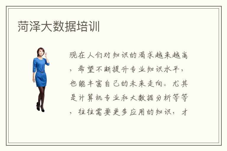 现在人们对知识的渴求越来越高,希望不断提升专业知识水平,也能丰富自己的未来走向。尤其是计算机专业和大数据分析等等,往往需要更多应用的知识,才能保障未来的发展走得更加顺畅。菏泽大数据培训老师水平其实也有很多是相对不错的,师资力量雄厚,专业水平高。很多老师都有良好的经验,可以让学生更快应对生活的大大小小事情。菏泽大数据培训教学优点主要在于教学的模式,有些学校采用的是小班的教学,老师可以拥有更好的设备,可以照顾到学生的时间更多,专家的资源也非常丰富,学生能学习非常先进的知识。菏泽大数据培训难不难找,其实有几个参考因素,包括老师的水平,专业的资源,优良的设备,非常先进的学校和教学模式,都能够让学生更快掌握专业知识,效果更突出明显。