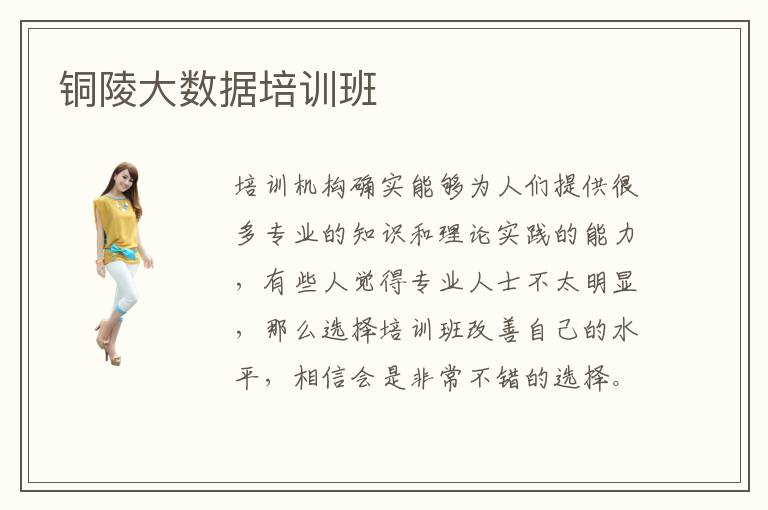 培训机构确实能够为人们提供很多专业的知识和理论实践的能力,有些人觉得专业人士不太明显,那么选择培训班改善自己的水平,相信会是非常不错的选择。但是现在培训班特别多,所以大家要对比,不要只能看到学习的环境或者是费用,还要更加深入了解老师的资历,培训的方法以及学生的水平。铜陵大数据培训班效果其实并不是完全相同的,每个培训班都有自己专长的优势和特点,有些大数据培训班比较擅长于理论知识的教导,还有些培训班也更加重视理论和实践的生活应用,总之不同培训班的培训方法不一样,应该在选择之前考虑清楚。铜陵大数据培训班条件如果是比较优越的,教学的效率会高很多,老师的经验也会变得更加丰富。铜陵大数据培训班水平如何,大多数学校的专业水平很高,教学成果有保障。