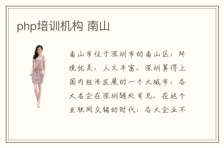 南山市位于深圳市的南山区,环境优美,人文丰富。深圳算得上国内经济发展的一个大城市,各大名企在深圳随处可见。在这个互联网交错的时代,各大企业不断需要it技术的新兴力量,需要设计属于自己公司的网站,因此就需要大量的高端网页设计人员,而php是近年来深受网页设计工程师的喜爱。那么,大家知道php培训机构在南山哪家最好呢?