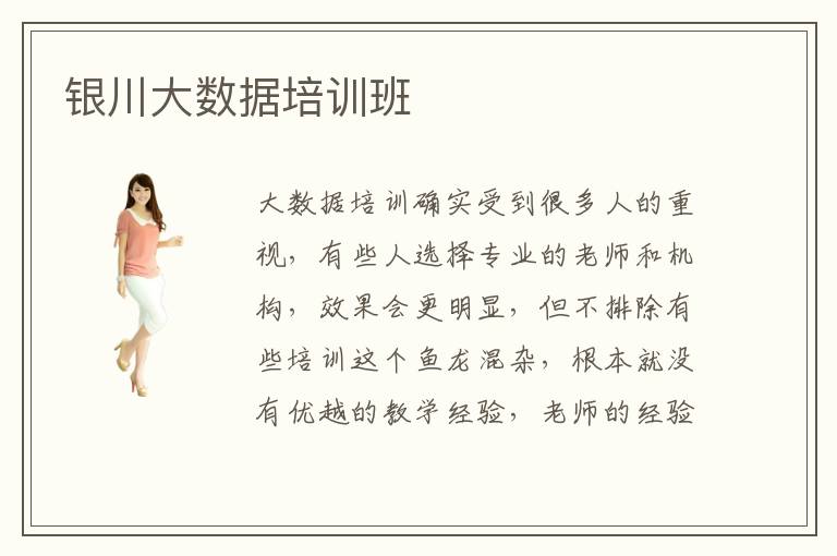 大数据培训确实受到很多人的重视,有些人选择专业的老师和机构,效果会更明显,但不排除有些培训这个鱼龙混杂,根本就没有优越的教学经验,老师的经验和资历都不够高,在培养学生的方面会遇到很多问题,而且很难为学生答疑解惑。银川大数据培训班技术能够反映出教学的质量和水平,如果学生可以针对这方面来分析,提高自己的专业知识水平,那么效果往往会更加突出,而且也可以为更多学生提供更多优越的服务。银川大数据培训大数据培训班经验丰不丰富,培训经验丰富直接影响到教学的成果和质量,有些培训班的经验已经有多年,可以应对多少学生,所以总体来说还是比较好的。银川大数据培训班零基础适合读吗,大多数零基础学员都可以报名参加,而且有很多课程都是针对零基础学员的。