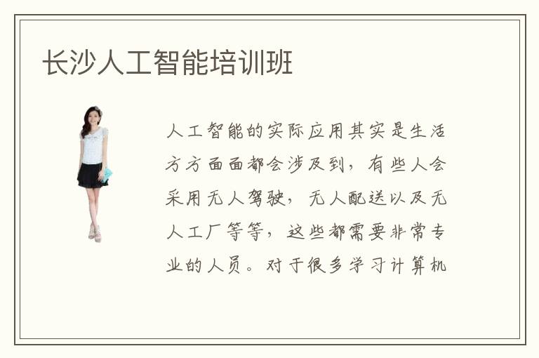 人工智能的实际应用其实是生活方方面面都会涉及到,有些人会采用无人驾驶,无人配送以及无人工厂等等,这些都需要非常专业的人员。对于很多学习计算机的专业人士来说,确实是不小的挑战,如果缺乏这些方面的应用,那么未来在工作生活当中会有非常大的缺陷。长沙人工智能培训人工智能培训班质量其实也是有很多都能够发挥效果的,有些专业优势明显的学校,往往可以培养更多实用型的学生和人才,为社会作出重大的贡献。长沙人工智能培训班教学方法,主要是小班教学,而且有些学校的专业水平是很高的,已经有很多年的办学经验,教学理念突出,效果也是很明显。长沙人工智能培训班找工作难不难,大多数找工作都比较简单,其实就算学生没有到培训机构培训一段时间,也很容易找工作,在培训机构培训之后,往往可以更上一层楼。