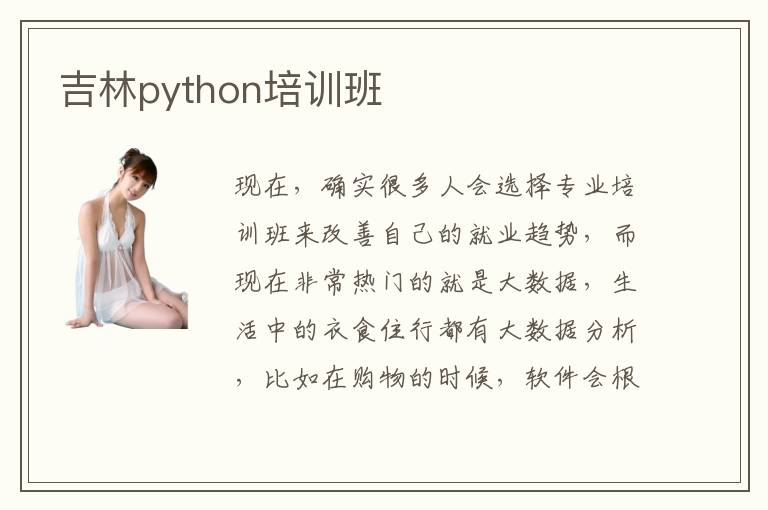 现在,确实很多人会选择专业培训班来改善自己的就业趋势,而现在非常热门的就是大数据,生活中的衣食住行都有大数据分析,比如在购物的时候,软件会根据消费者的购物行为推荐适当的产品,大大节省消费者的时间,让生活变得更加便利。专业人士也应该要关注这些大数据的应用,如果缺乏实践演练的机会,可以到培训班学习。吉林python培训班成果也是相当不错,有些学校可以针对不同学生来培养,制定个性化的培养方案,效果更加有针对性。而有些学校可能并没有这样的服务,所以效果能发挥。吉林python培训python培训班有没有用,大多数培训班都可以让学生的动手能力变得更强,思维能力有所提升,未来发展更有优势。吉林python培训班报名费贵不贵,可能是3000到5000元之间,如果是高端一点的项目,费用也会随之上升。