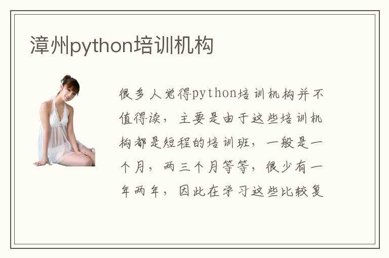 很多人觉得python培训机构并不值得读,主要是由于这些培训机构都是短程的培训班,一般是一个月,两三个月等等,很少有一年两年,因此在学习这些比较复杂的设计语言时,可能很难掌握具体的操作技能,其实大家忽略了一点,因为现在很多培训班都是实践和理论相互结合,效果会更突出,学习效率也会有所提高,通常几个月也能发挥不错的优势。漳州python培训机构前景好不好,大多数培训机构都能够针对现在企业需求进行专业的设置,所以具有非常广泛的就业前景。学生在学完这些知识之后,也能够将理论应用到实践当中,就业过程更有优势。漳州python培训机构哪些好,一方面可以看一下学校的教学水平,专业特色,教学所需要的时间以及老师的资源等等,要是培训机构的资源比较多,设备更加先进,说明教学质量也会有所改善。