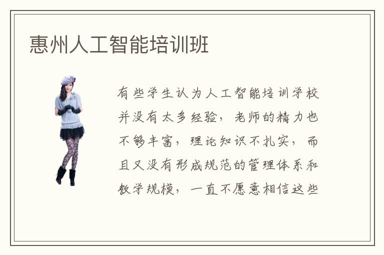有些学生认为人工智能培训学校并没有太多经验,老师的精力也不够丰富,理论知识不扎实,而且又没有形成规范的管理体系和教学规模,一直不愿意相信这些培训机构能带来好处。其实大多数培训机构都不错,有些卫生机构的效率高,优势明显,专业突出,教学模式新颖,也能发挥好效果。惠州人工智能培训人工智能培训班学习效率大多数都还是非常理想的,短时间内就可以让学生拥有实践应用的能力,当然要想保持长久的优势,自身的努力也非常关键,每天都要学习相关的知识,吸取新的理论实践应用能力。惠州人工智能培训班优势如何,主要是小班的指导,老师和学生可以更加多互动。惠州人工智能培训班教学模式往往是针对每一个学生的水平进行培养,让学生能针对自身的基础情况,进行有效的提升,而且也不会浪费太多时间。