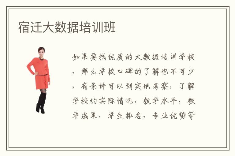如果要找优质的大数据培训学校,那么学校口碑的了解也不可少,有条件可以到实地考察,了解学校的实际情况,教学水平,教学成果,学生排名,专业优势等等。宿迁大数据培训班师资通常都是非常优越的,老师的水平高,而且有老师拥有良好的设备,专业的资源可以为学生提供大量的优质服务,效果更佳。宿迁大数据培训大数据培训班教学品质也是相当不错,不同的学校往往效果都存在很大的差异,但是大家在选择这些方案的时候,要多关注不同方法的效果以及可能存在的缺陷,进行针对性的控制,才能够全面提升专业的知识水平,保障良好的趋势。宿迁大数据培训班选择方式可以先关注教师的水平,环境的优势以及学生的氛围。有些学校的专业程度非常高,拥有大量的配备资源,效果更明显,也受到很多人的重视。