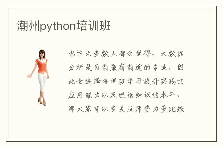 也许大多数人都会觉得,大数据分析是目前最有前途的专业,因此会选择培训班学习提升实践的应用能力以及理论知识的水平,那大家可以多关注师资力量比较雄厚,性价比比较高,教学环境比较优美的学校类型。在专业老师的帮助下,往往在两三个月之内都能够发挥非常好的优势,减少就业的压力和负担。潮州python培训班好吗,要看老师的水平,每个学校的培训方法,要是培训机构还采用传统的教学模式,其实效果是很难保障,尤其是这些应用性非常强的学科。潮州python培训python培训班师资有很多参考的因素,包括老师的教学经验,理论知识的能力,工作经历,学历水平,职称等等,可以从这几个方面多加观察对比。潮州python培训班值得花钱吗,要看个人的水平,如果基础能力比较一般,专业培训班其实能够改善。