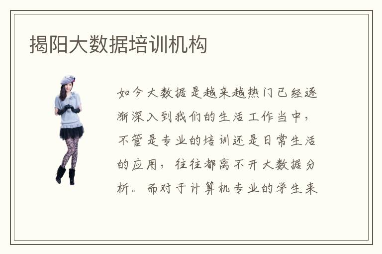 如今大数据是越来越热门已经逐渐深入到我们的生活工作当中,不管是专业的培训还是日常生活的应用,往往都离不开大数据分析。而对于计算机专业的学生来说,要想掌握大数据分析,需要花大量的时间。如果自学能力不是特别强,可以在培训机构的帮助下不断改善,那么也要掌握揭阳大数据培训大数据培训机构教学攻略,首先要关注学校的教学环境,老师的水平,专业的培训方法,学生学习氛围等等,全方位进行对比,找到更加适合的学校。揭阳大数据培训机构专业,如果水平不错,排名比较靠前的情况下,应该是值得选择的。揭阳大数据培训机构难不难学,很多学校都拥有良好的设备,教学资源丰富,老师的水平高,专业特色更加明显,那学习的难度就不会太高。但有些学校的培训难度会高一点,需要大家更谨慎对待。