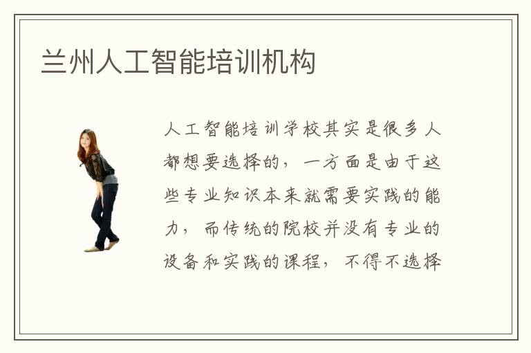 人工智能培训学校其实是很多人都想要选择的,一方面是由于这些专业知识本来就需要实践的能力,而传统的院校并没有专业的设备和实践的课程,不得不选择智能培训学校改善。兰州人工智能培训人工智能培训机构好不好培训机构的好坏,其实是受到很多因素的影响,包括教学资源,老师的水准,以及每个学生的学习态度等等。有些培训机构虽然有非常好的资源,老师也非常厉害,但如果学生不努力,其实很难发挥成果。兰州人工智能培训机构经验通常都比较优越,但也有小学校可能只有两三年的经验,要想发挥更好的教学成果,需要更长一段时间。兰州人工智能培训机构有作用不,大多数培训机构的效果还是比较突出,老师可以针对不同学生来培养,而且拥有良好的工作经验,效果也会更不错。