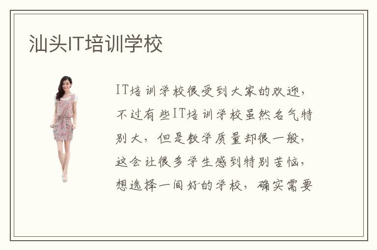 IT培训学校很受到大家的欢迎,不过有些IT培训学校虽然名气特别大,但是教学质量却很一般,这会让很多学生感到特别苦恼,想选择一间好的学校,确实需要很高的难度。这个时候不妨了解知名度高而且口碑相当不错的学校类型,如果学校的教学质量比较高,那么口碑也应该是成正比的。汕头IT培训学校老师怎么样,一般要看学校老师的教学经验,如果老师的教龄比较长,拥有更高级的学历,在工作岗位上已经有多年的研究,那么在教学的时候会达到更好的教学成果。汕头IT培训学校哪些好,一个好的IT培训学校首先要配备良好的设施,如果长期缺乏专业的设备和设施,那么学生缺乏锻炼,很难发挥优秀的教学目的。另外还要看环境和学习氛围,如果学校是比较好的,学习氛围也相当浓厚,让学生更加轻松学习。