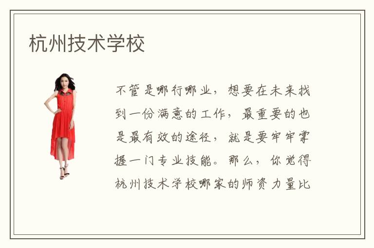 不管是哪行哪业,想要在未来找到一份满意的工作,最重要的也是最有效的途径,就是要牢牢掌握一门专业技能。那么,你觉得杭州技术学校哪家的师资力量比较强呢?杭州地区成立了很多家技术学校,以“为国内培训更多专业的技术型人才”为宗旨,开设了基础培训班和提升培训班,可供学员们选择学习。采用多种教学模式因材施教,让学员们更高效的学习专业技能。