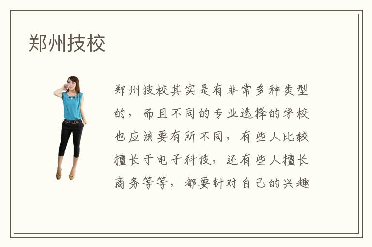 郑州技校其实是有非常多种类型的,而且不同的专业选择的学校也应该要有所不同,有些人比较擅长于电子科技,还有些人擅长商务等等,都要针对自己的兴趣爱好来决定,不要只关注于费用,以免捡了芝麻丢了西瓜。郑州技校师资能够反映出学校的教育水平,要是师资力量非常雄厚,那么说明学生的水平是比较高的,教学环境更加优越,而且教学成果往往也成正比。郑州技校效果如何,要看每个人的学习情况,有些人的学习能力比较强,花了大量的时间在学习功课方面,那么教学的成果往往会更好。而有些学校没有鼓励学生努力学习,其实学生会生活在一种非常享受轻松的环境,也很难把自己的心态放下来学习,那教学质量也会受到干扰。所以在选择学校方面要谨慎了解不同学校的水平。