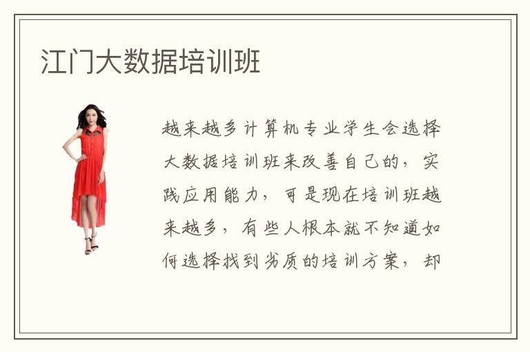 越来越多计算机专业学生会选择大数据培训班来改善自己的,实践应用能力,可是现在培训班越来越多,有些人根本就不知道如何选择找到劣质的培训方案,却是很难达到自己想要的成果,当然如果有这方面的苦恼,可以多关注不同培训班的优缺点,找到适合自己的类型。江门大数据培训班专业度如何,通常是非常高的师资力量雄厚,而有些学校拥有良好的优势,学生的水平也比较高,尤其是在几个星期或者是几个月之内,应该能够保持产品的优势,这样理论应用到实践当中,效果也会更加明显。江门大数据培训班师资水准也相当不错,不过不同的学校师资水准是不一样的,有些学校更加重视师资力量的建设,招揽更多高级的老师,教学成果更应该会更好。江门大数据培训班哪些好,要多关注学校的培训方法,教学经验,专业程度,排名情况等等。