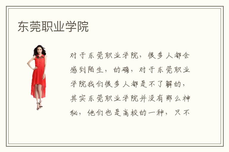 对于东莞职业学院,很多人都会感到陌生,的确,对于东莞职业学院我们很多人都是不了解的,其实东莞职业学院并没有那么神秘,他们也是高校的一种,只不过我们传统的高校是文化方面的教育,职业学院一般为职业技术的培训,二者的区别就在于此。一般我们的心里都认为东莞职业学院的学生成绩都是非常差的,这点有一定道理的,但是也不完全正确,因为东莞职业学院本身就是职业技术的培训,不需要学生有过高的文化水平,另外东莞职业学院专科内也设有一定的文化课程,所以东莞职业学院的学生不一定就是没有文化,只是侧重点不同而已。现在随着竞争压力的增加,东莞职业学院的建设较从前有了非常大的提升,从东莞职业学院师德师风建设专业技能都比之前有了质的飞越,同学们可以放心报名。