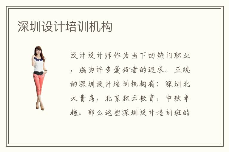 设计设计师作为当下的热门职业,成为许多爱好者的追求。正规的深圳设计培训机构有:深圳北大青鸟,北京积云教育,中软卓越。那么这些深圳设计培训班的办学理念是什么呢?注重学生职业素质的养成和专业技能的培育。培训班还重视学员对于实际项目的运作。所以在办学理念上还是可以看出这些培训班是对学员负责的,也是对在认真的办学。另外我们来说说设计设计师职能,优秀的设计设计师需要具备什么条件?设计设计师的职能主要分为三大块;首先是对于图形的设计,其次是用户产品的外观设计;最后是产品的测试和研究。好的设计设计师就是要对这以上三大块有熟练的操作流程和经验,并且设计设计师很重要的就是具备敏锐的美感,审美能力其实在设计行业是很关键二等存在,所以在平时一定要注重培养。深圳设计设计培训这几年来数量不断增多,但是就深圳设计培训机构的整体现状来看,数量虽然上去了,但是质量并没有提升。正规办学的设计设计培训机构不多。有以下这么几所正规办学的深圳设计培训机构机构:北大青鸟,中软卓越,甲骨文和兄弟连。可以说互联网的发展其实也带动了广告业和传媒业的发展,因此设计设计师的就业前景也越来越好。很多感兴趣的人都往这个职业靠拢。那么在设计设计设计的原则是什么呢?有什么需要注意的?其实设计设计主要就是遵循以下几点原则:设计界面的整洁性,设计人性化,设计从用户角度出发,设计采用的颜色尽量少,设计语言简洁易懂。刚入门的设计师可以这几个原则出发设计,这样可以尽量避免出错,更好的满足用户需求。在薪水上,成熟的设计设计师的薪资待遇在7-8k。可以说是一个非常不错的待遇了。平面设计师也是近几年来的热门职业。平面设计涉及的主要载体是海报,网页和平煤等,平面设计属于商业社会的产物,起到了宣传社会的作用。平面设计师近年来不仅在广告和传媒领域开疆扩土,还将触角伸到了互联网行业,。深圳设计培训机构开设机构有很多,在经营模式和办学上也不尽相同。优秀的深圳设计培训机构有哪些?中软卓越,达内教育这两所南京平面设计培训机构都办得不错体现在办学模式和办学成果上。平面设计师的薪资待遇大概在5-7k左右,刚入职的平面设计师薪资在3-4k,优秀的平面设计师月薪可达7-8k。平面设计师作为当下热门职业,吸引了非常多的人就职,但是市面上的平面设计师的缺口仍旧很大,因此平面设计师的就业前景是越来越好的。