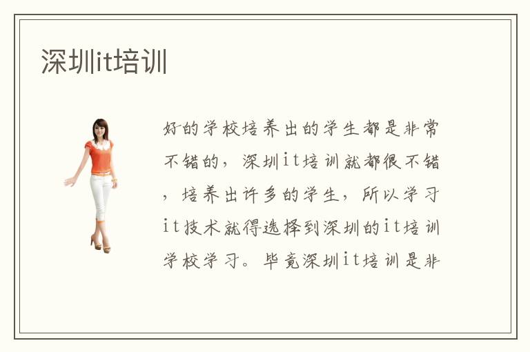 好的学校培养出的学生都是非常不错的,深圳it培训就都很不错,培养出许多的学生,所以学习it技术就得选择到深圳的it培训学校学习。毕竟深圳it培训是非常专业的,在这里可以学到专业性的知识。深圳it培训设备非常的先进,也很齐全。在这里学习的学生们可以一人一台,得到很好的实际操作体验。深圳it培训,设备每年都会进行,更新升级。所以得深圳it培训学校it技术完全可以放心,是可以学到真正的专业性知识的。也可以快速掌握专业知识。其实学习it技术是比较有前途的,毕竟it行业的人才非常的稀缺。掌握it技术就都非常的吃香。而学习it技术最快的方法就是到深圳it培训学习。深圳it培训真的特别的不错。随着电子时代的来临,越来越多的人都在学习电脑技术。毕竟现在,时代发展的非常快,如果不及时学习电脑技术,会落后。而从事电脑行业也是非常的吃香的,工资方面也是非常高,待遇也是非常不错。所以有越来越多的人都在学习电脑技术。当然电脑技术,并不是简单就可以掌握的,得选择一些专业的学校去学习专业的电脑技术。深圳it培训就都非常的专业。这些电脑培训学校有着独特的教学模式,这些教学模式培养出了许多出色的学生们。因为深圳it培训里面的老师非常专业,所以他们用到的教学模式也都是比较专业的。针对学生们的学习情况,进行不同的教学方案。所以在深圳it培训,学习起电脑技术会非常的快速。也会特别的轻松,就可以掌握电脑技术。学习电脑技术,当然得选择专业的电脑学校去学习。深圳it培训就都,非常的专业。在深圳it培训学习的话可以体验不同的教学方式。很轻松的就能掌握到专业性的电脑技术。深圳it培训教学设备非常的先进,也非常的齐全。学生们可以一人一台,很好的积累实际操作经验。所以想要学好电脑技术,选择好的学校是至关重要深圳it培训设备先进吗的。深圳it培训,就是非常专业的电脑学校,会帮助你很好的学习电脑技术。每年深圳it培训培养出许多的人才。在教学方面会非常的有经验。所以,在深圳it培训真的可以掌握到专业的电脑技术。越来越多的人都在学习电脑技术,但学习电脑技术最快的方法,就是到深圳it培训学习。所以很多人对电脑技术感兴趣的,人员都选择了深圳it培训来学习电脑技术。