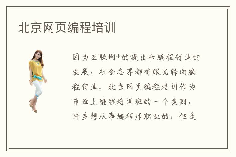因为互联网+的提出和编程行业的发展,社会各界都将眼光转向编程行业。北京网页编程培训作为市面上编程培训班的一个类别,许多想从事编程师职业的,但是以前没有接触过这块知识的人都会选择报考北京网页编程培训。那么如何选择好的编程培训班呢?首先是看一下这家培训班在当地否具有知名度,第二是教学环境如何,第三教学模式以及师资力量是否有资质;这几点是考察的关键。那么优秀的北京网页编程培训有哪些呢?北大青鸟,甲骨文,北京积云教育,中软卓越都是编程培训机构中,办学正规,成果优良的培训班。考察完培训班的同学就会开始关心编程师薪资待遇了,由于目前编程行业的热门程度,基本上的编程职业都属于高薪职业,所以就编程师而言,月薪一般在10-20k之间,非常可观。但是就目前而言,市面上专业的编程师少之又少。因此要想成为一名专业的编程师,还是需要时间的打磨和经验的累积的。这是一个机遇也是一个挑战。在安徽北京,各大高校和职业学校林立,同时一些培训机构也非常多。北京网页编程培训也是其中一员。那么北京网页编程培训有哪些?据了解,比较受欢迎的北京编程师培训学校有:北大青鸟,中软卓越,甲骨文这三所。重点推荐北京北大青鸟,它是一所专门培养编程紧缺人才的培训机构,目前的办学规模涉及全国60个城市的200余家,算得上是全国最大的编程培训机构了。当然这里面也有开设编程培训班。每年的办学成果非常好,为社会输送了不少编程人才。不少编程专业的同学就要问了,编程师的职能是什么,入职后主要负责什么?首先重要的一块就是了解用户需求,创建和修改代码,实现功能。还有就是分析信息,解决计算机软件开发问题。最后就是和项目经理工作上的沟通和信息的传达。编程行业作为现在和未来发展的中坚力量,正慢慢打开属于它的新世纪。这几年从事编程相关职业的人越来也多。北京网页编程培训的规模也因此发展壮大。那么北京网页编程培训办得好的有哪些呢?中软卓越和北京积云教育是不错的选择。感兴趣的可以去了解一番。接着来说说软件培训涉及什么内容;具体地说,分为几个大方向,如果你想做游戏学习内容涉及C++和编程。还有就是如果对手机APP开发感兴趣就是学习编程。如果你要是网页开发感兴趣就是学习编程和AJAX。其实选择好的专业,是就业的前提,然后学好专业就是就业的关键所在。希望大家在选择培训机构时,一定要对专业加以了解,再做选择。那么软件工程师就业前景如何呢?因为编程行业和互联网的发展,编程相关职业也是水涨船高,软件工程师作为编程职业大军的一部分,可以说就业前景一片良好了。