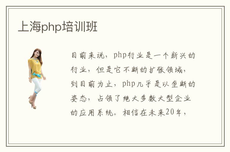 目前来说,php行业是一个新兴的行业,但是它不断的扩张领域,到目前为止,php几乎是以垄断的姿态,占领了绝大多数大型企业的应用系统。相信在未来20年,php在方面的地位也是不会被动摇的。因此,可以说php行业发展肯定会越来越好的。上海php培训班也随之发展壮大,那么上海php培训php培训班有哪些呢?具体有这么几家培训班还不错:上海北大青鸟,上海新华电脑学院,中软卓越等,在选择上海php培训班的时候,希望同学们不要被充满诱惑的噱头迷了方向,而是要进一步关注其内在,比如说,该培训班是否在行业具有知名度和自己的品牌,在教学资源上,是否属实;培训班毕业生和用人单位是否对该培训班给予了肯定的评价,这些都是考察一所培训班是否正规办学的关键所在。现在很多人都在学习php技术,而学习php技术当然得到专业的培训机构去学习。上海php培训班机构都非常的专业。在这里可以学到非常专业的技术,你能很轻松就可以掌握php专业技术。所以很多学习php技术的人都到上海php培训班机构学上海php培训班机构培训水平怎么样习。上海php培训班机构培训水平也是非常高的。所以很多人都选择在这里学习。如今php技术是一门非常火爆的技术,学会这门技术对自己工作方面很有帮助。学习php技术是比较有发展前途的,毕竟现在有专业技术的人越来越少了,所以用人单位都比较看重有专业技术的人才。所以学习php技术是非常有必要的,上海php培训班机构就都可以帮助你快速学会php这门专业技术。现在这个社会就是一个非常现实的社会,要是不会一门专业技术就没有办法在这个社会上立足。大部分人都在学习php技术,php技术真的是近几年特别受欢迎的一门技术。而学习php最好的地方在上海,上海php培训班培训水平非常的高,每年都会培训出大批的人才。所以很多人都选择在上海php培训班学习php技术。在这里真的可以学到很多,比较有用的专业知识。在以后的工作岗位上也能得到很大的帮助。所以学习php结束是非常重要的,毕竟大家都在学,你要是不学的话不就落后了吗?上海php培训班会帮助你特别轻松就掌握php培训技术。上海php培训班用他独特的教学模式,让你感到轻松的学习过程。所以想要学好php技术就到上海php培训班学习。