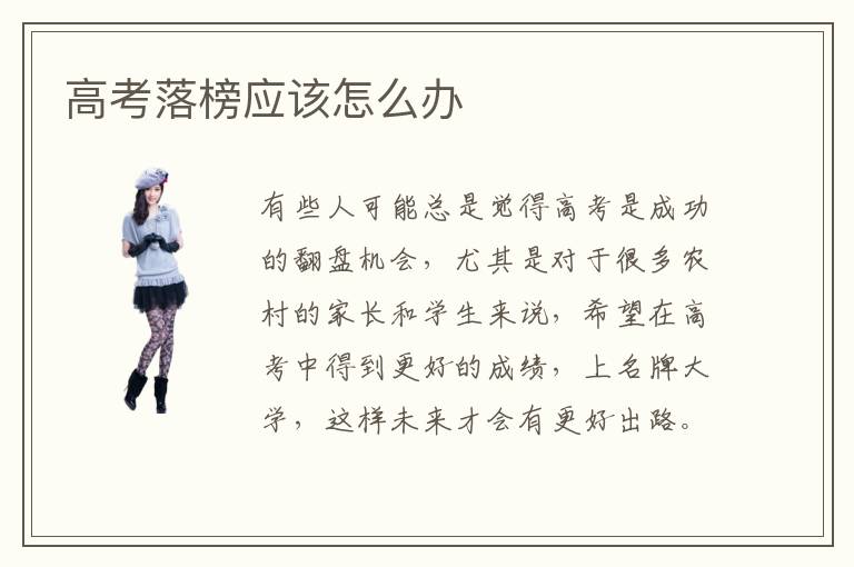 有些人可能总是觉得高考是成功的翻盘机会,尤其是对于很多农村的家长和学生来说,希望在高考中得到更好的成绩,上名牌大学,这样未来才会有更好出路。其实并不然现在出了很多,除了学历之外,专业技术以及情商等等,也是非常关键的。高考落榜应该怎么办可不可以选大专,现在本来就有非常多大专的学校,就算是高考落榜也可以选择,而且类型实在太多。高考落榜应该怎么办优势是什么,高考落榜其实优势并不是特别大,一般选择的路也比较多,包括外出就业或者是成人高考,以及重新选择再考一次,由于这些路都比较艰辛,需要更多努力才能达到想要的答案。所以大家要做好吃苦的准备,一次高考的转折点没有把握好,但只要吸取教训,花更多时间努力学习,相信也会重新弥补过来。