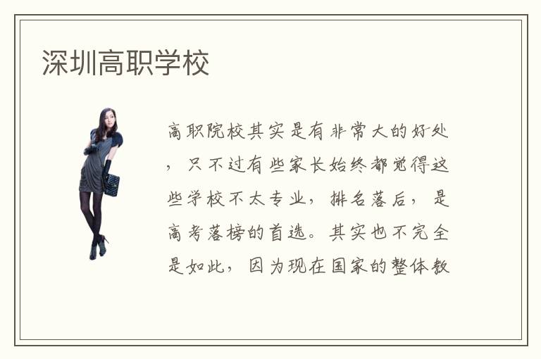 高职院校其实是有非常大的好处,只不过有些家长始终都觉得这些学校不太专业,排名落后,是高考落榜的首选。其实也不完全是如此,因为现在国家的整体教育水平都在提升,而在一些发达城市的高职院校,始终是能够保持良好的水平,资源也相对比其他城市的学校更多。深圳高职学校要花多长时间,高职学校要往往是花三年左右的时间,才能够毕业,取得毕业证之后,找工作也相对简单很多。深圳高职学校配套设施可以反映教学水准,要是连基本的配套设施都没有,那么可能会影响整体的教学。因为大多数高职院校都非常注重实践,要是在理论课程之后没有实践的配套设施,那学生往往非常难进步。另外配套设施只是一个方面,还要多了解口碑情况,如果高职院校表现得比较好,让学生和老师都有非常好的评价,那么口碑还是相当可观的。