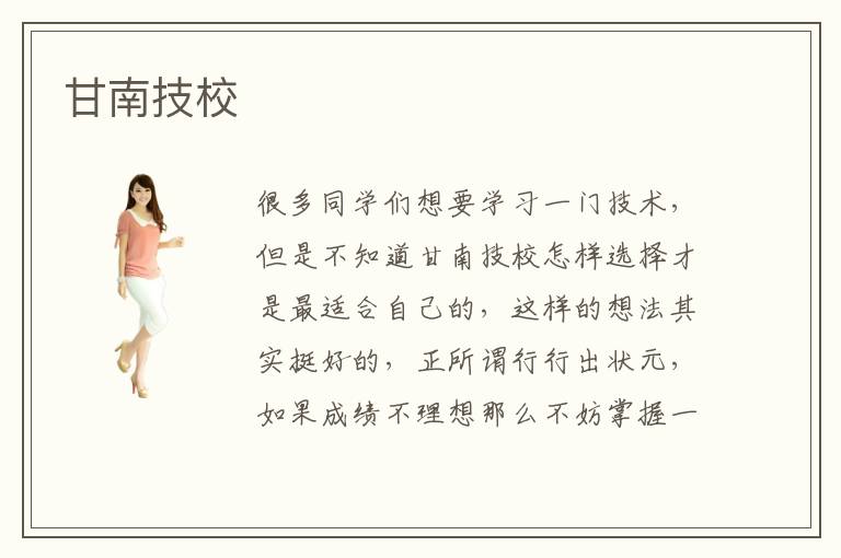 很多同学们想要学习一门技术,但是不知道甘南技校怎样选择才是最适合自己的,这样的想法其实挺好的,正所谓行行出状元,如果成绩不理想那么不妨掌握一门专业技术,社会发展非常迅猛,对于专业技术型人才的需求量更是与日俱增,只要你有一技之长那么在就业方面肯定不是问题。还有些同学可能有疑问,我的成绩并不理想,想要学习一门技术,但是不知道能不能考上甘南技校?我们首先要明确一点,那就是甘南技校是培养专业技术人才的学校,并不注重文化教育,因此甘南技校的招生标准是不高的,一般的应届初中毕业生都可以顺利入学,往届初中毕业生也是可以入学的,所以同学们如果想报名甘南技校,只需要考虑自己在哪个专业感兴趣就好了,招生的问题不用担心。