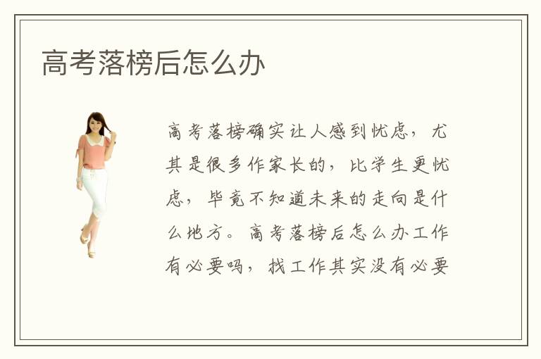 高考落榜确实让人感到忧虑,尤其是很多作家长的,比学生更忧虑,毕竟不知道未来的走向是什么地方。高考落榜后怎么办工作有必要吗,找工作其实没有必要,如果觉得自己想要到社会体验一下,完全可以在高考的三个月暑假,做一些简单性的工作,体验下社会的真正生活,也能够得到自己的第一桶金。很多人在考试的时候没有发挥好,没有大学可以读,那么想要到社会工作,其实这是一种比较不可考虑的选择。社会工作现在越来越多需要高学历未来的技术也是需要不断深化,如果单凭高中生的文凭,没有任何未来的就业保障。高考落榜后怎么办出国怎么好,中国也是很多高中生落榜之后的选择,因为中国往往拥有更好的条件,但前提条件是要有良好的语言能力,和外国人有更好的交流。