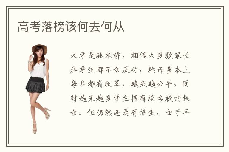 大学是独木桥,相信大多数家长和学生都不会反对,然而基本上每年都有改革,越来越公平,同时越来越多学生拥有读名校的机会。但仍然还是有学生,由于平时并不是特别在乎高考,没有努力学习,或者是准备不充分,导致高考落榜的问题,感到特别后悔。高考落榜该何去何从有没有必要再考一次,如果是不小心考砸了,没有调整好自己的心态,那么完全有必要再考一次。虽然大多数人觉得会浪费一点时间,但在这一年中学习历练会更多。高考落榜该何去何从要不要到国外留学,高考落榜之后,如果觉得自己的家庭条件还不错,而且家人要支持,不妨到国外留学,一方面可以到全新的领域开拓视野,在完全陌生的环境,提高适应的能力。可以掌握西方的思维,有些学生可能就会更加容易融入到西方的环境当中,对未来的全球化发展确实是有比较大的优势。