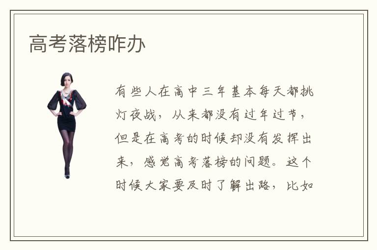 有些人在高中三年基本每天都挑灯夜战,从来都没有过年过节,但是在高考的时候却没有发挥出来,感觉高考落榜的问题。这个时候大家要及时了解出路,比如再考一次或者是到大专院校读书,不要让自己无路可走。高考落榜咋办出国好不好,高考落榜到国外留学也是不错的水平,但不是所有家庭都可以支撑,要找好的学校,还是要花多一点心机,不能够随便找一些三流的大学。高考落榜咋办哪些好,高考落榜其实要了解自身的缺陷,虽然是一次比较重大的失败,但不要欺骗自己,认为这些不重要。更不能够夸张化,总是认为高考失败之后就是人生结束。其实高考生只有20岁,未来的前途还非常长,发展有无限的可能,只要坚持自己的路,埋头苦干,随着时间的流逝,那么山会越来越高。