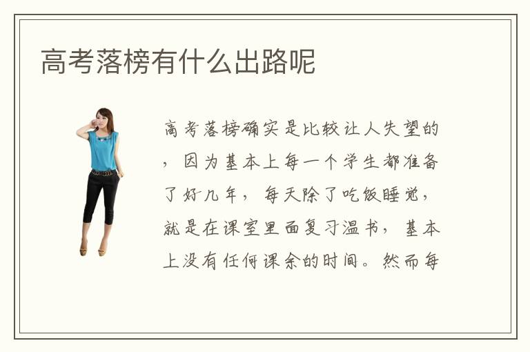 高考落榜确实是比较让人失望的,因为基本上每一个学生都准备了好几年,每天除了吃饭睡觉,就是在课室里面复习温书,基本上没有任何课余的时间。然而每个人的学习能力都有限,学习效率也参差不齐,或者是幸运程度也不一样,所以高考落榜的人数也是存在非常大的变化。高考落榜有什么出路读大专好吗,高考落榜非常重要的一条出路就是继续深造,读大专院校,找到自己的兴趣点,继续挖掘。高考落榜有什么出路要不要继续考试,其实现在高考落榜了也不要太担心,因为整个社会的发展都是非常有机会的,所谓大路通罗马,如果觉得自己没有充分发挥出来,那么可以再发半年到一年的时间,重新努力,考上更好的大学。不过选择这条路,毕竟比较艰苦,要取决于自己的决心和信心,制定详细的计划,跳出机械式的学习方法。