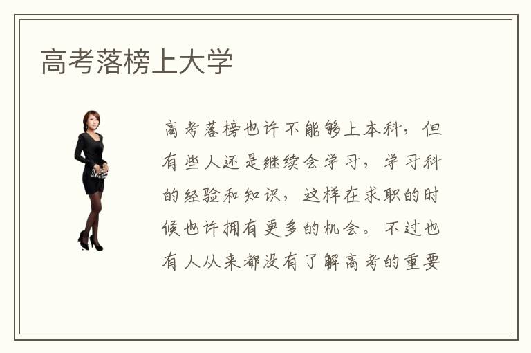 高考落榜也许不能够上本科,但有些人还是继续会学习,学习科的经验和知识,这样在求职的时候也许拥有更多的机会。不过也有人从来都没有了解高考的重要性,等到考试成绩出来之后,才知道高考如此重要,因此想要再一次到学校学习。高考落榜上大学要不要工作,高考落榜之后,当然不要马上参加社会的工作,另外这些都是基础性的工作,很容易被人淘汰的,现在科技进步非常快,很多职业可能未来就会被机器人淘汰。高考落榜上大学哪些比较有优点,落榜的学生上大学可以接触各种知识和同学,虽然在当前没有得到本科的学位,但还是可以专升本。离开学校之后,还可以找自己喜欢的专业,这样也不至于像无头苍蝇似的。虽然刚开始可能就是底层工作,做一些琐碎的事情,但只要从底层开始做起,未来一步一步才会走得更加踏实,一步一个脚印。