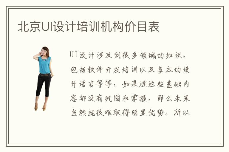 UI设计涉及到很多领域的知识,包括软件开发培训以及基本的设计语言等等,如果连这些基础内容都没有巩固和掌握,那么未来当然就很难取得明显优势。所以大家应该要懂得去运用,也要了解各种应用的范围,学习的方法技巧等等。另外大家也可以多关心北京UI设计培训机构价目表,了解各种价格影响因素,找到合适的ui设计机构类型。北京UI设计培训机构价目表如何考虑,首先要关注UI设计培训机构的范围以及教学课程内容等等,有些学校确实是没有太优质的课程培训,教育体系也不太完善,因此学生在掌握这些知识的时候会非常吃力。北京UI设计培训机构价目表范围,可能是在3800元到8800元,有些机构确实是有不错的管理能力,所提供的知识都是很先进的内容,因此学生在掌握这些知识的时候都可以更快进步。