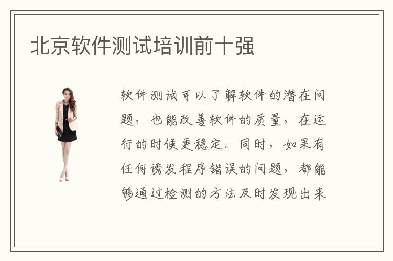 软件测试可以了解软件的潜在问题,也能改善软件的质量,在运行的时候更稳定。同时,如果有任何诱发程序错误的问题,都能够通过检测的方法及时发现出来。因此可以预见的是,软件测试对于未来的软件开发具有极为重要的意义。有些专业的程序员也意识到了这些专业的重要性,想要报名北京软件测试培训前十强,优化自身的专业能力。北京软件测试培训前十强哪些,软件测试培训的机构通常有不错优势,如果要想选择比较值得考虑的,那么可以从口碑出发,专业能力如果比较强,那么口碑更好,这样软件测试培训机构应该会更加令人满意。北京软件测试培训前十强能力强,零基础也有很多学习的课程内容,所以不要灰心,就算没有太多经验和基本的知识,也可以在老师的快速指导下得到跨越式的进步。