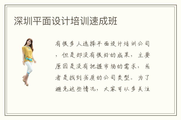 有很多人选择平面设计培训公司,但是却没有很好的成果,主要原因是没有把握市场的需求,或者是找到劣质的公司类型。为了避免这些情况,大家可以多关注各种不同优质的培训公司,提高专业的水准,同时也可以减少各种浪费时间的学习方法。深圳平面设计培训速成班一般都是有比较强的优势,管理模式新颖,教学成果突出,也能为各种不同学员提供优质的教学方式,让自己可以始终保持独特的优势和发展进步。深圳平面设计培训速成班师资力量大多数都很强,还能够提供全面的快速的学习方案,让学生能够始终保持独特的优势和进步。深圳平面设计培训速成班好不好,如果是学习能力比较差的学生,可以考虑这些平面设计培训班,因为学生可能刚开始进步,如果学习不到位,那么可能就很难达到令人满意的学习成果。