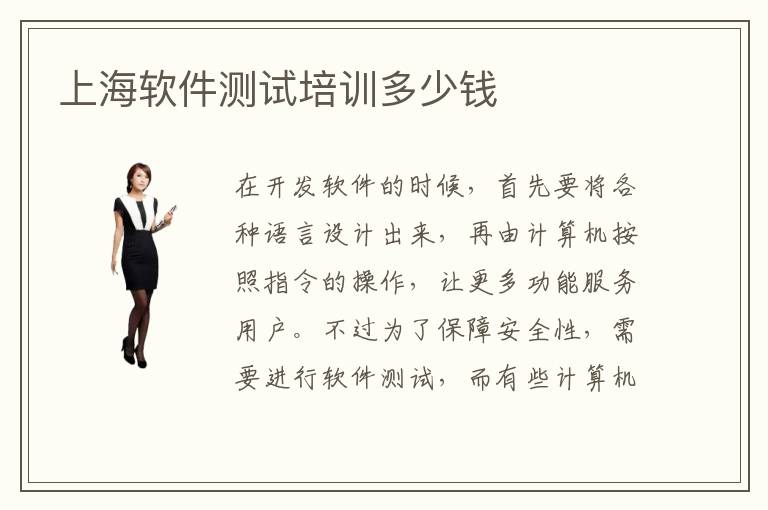 在开发软件的时候,首先要将各种语言设计出来,再由计算机按照指令的操作,让更多功能服务用户。不过为了保障安全性,需要进行软件测试,而有些计算机专业也有可能忽略了这些步骤,那么未来运用的时候会遇到很多麻烦。所以大家还是要多关心软件测试的方法,通过简单的技巧,让软件测试赶快掌握软件本身存在的缺陷。上海软件测试培训多少钱,软件测试培训的价格一般都会是3000~5000元,但取决于软件测试培训机构的能力。有些机构确实有很系统全面的课程,不管是软件操作还是在理论知识、真实的应用等等,都有全面的培训,学生适应更快能力更强,报名费用标准更高也很正常。上海软件测试培训多少钱合适,其实一般都会在学生可以接受的范围,不会特别贵。上海软件测试培训多少钱有效果,如果是基础性的课程,那么可能2000元到3000元。