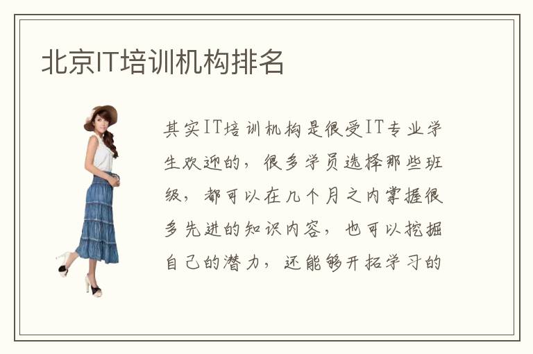 其实IT培训机构是很受IT专业学生欢迎的,很多学员选择那些班级,都可以在几个月之内掌握很多先进的知识内容,也可以挖掘自己的潜力,还能够开拓学习的思维,让自己在IT行业中始终保持不错的领先优势。北京IT培训机构排名通常都是比较高的,也有不错的经验和优势,许多学生在IT专业老师的专业辅导之后,都能够取得惊人的进步。北京IT培训机构排名是什么样的,排名情况,往往会反映出教学质量以及环境水平、基本的教学内容特色等等。北京IT培训机构排名有哪些比较可信,有些学生可能在专业能力方面不太有明显的进步,但是通过排名靠前的专业机构,可以优化技术,未来的发展空间也可以得到很好的提升。又或是IT行业方面并没有很好的口碑,排名也比较靠后,那么当然就很容易受到学生的怀疑。