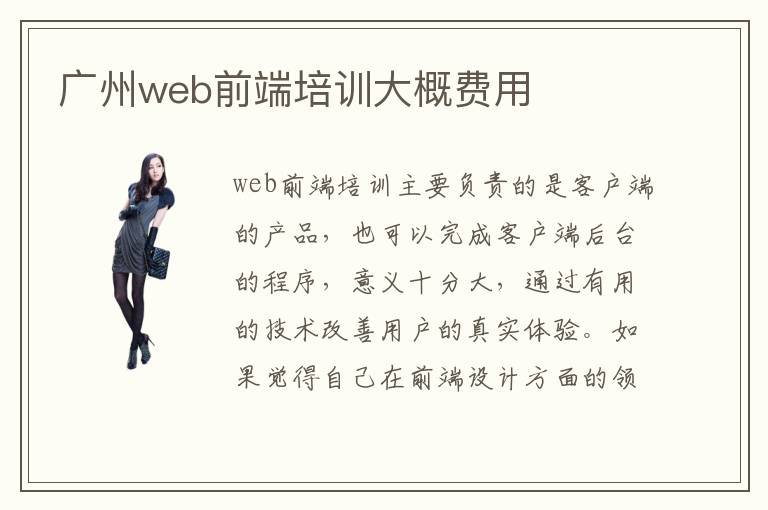 web前端培训主要负责的是客户端的产品,也可以完成客户端后台的程序,意义十分大,通过有用的技术改善用户的真实体验。如果觉得自己在前端设计方面的领域有欠缺,也没有办法独立完成前端设计开发,那么可以考虑优质的机构,改善未来的教育能力,也能发挥出更稳定的教学优势。广州web前端培训大概费用可能在2000~8000元,但是web前端设计培训机构的教育专业以及培训的方案、培训时间和师资力量等等都存在差异。因此这些费用应该要因人而异,不是千篇一律的。广州web前端培训大概费用怎么样,有些学生在技术方面比较薄弱,因此会从简单的web前端培训课程开始学起。那么这个时候的费用可能只需要3000元。广州web前端培训大概费用范围要看课程内容和课程时长,如果学习时间长,费用也会随之上涨。