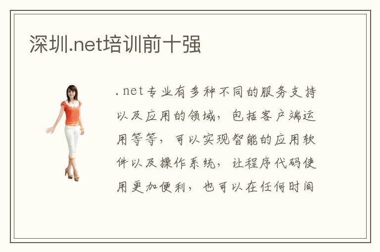 .net专业有多种不同的服务支持以及应用的领域,包括客户端运用等等,可以实现智能的应用软件以及操作系统,让程序代码使用更加便利,也可以在任何时间任何地点得到自己想要的服务和信息。不过在学习这些知识的时候,可能有些人会觉得自己很麻烦,因此会选择专业的培训机构,那么可以重点参考深圳.net培训前十强,老师的能力强,.net专业的教学效果明显,教学资源也比较多。深圳.net培训前十强教学环境优势通常是很突出的,如果学校连基本的环境优势和教育质量都没有办法提供给学生,当然就会存在很多限制。深圳.net培训前十强怎么样,通常有很多教育机构提供很专业的服务质量,管理水平也很突出,可以为多种学员带来不错的操作,也能针对不同学员进行培训,让培训的内容更有个性化的特点。