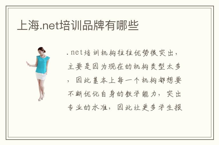 .net培训机构往往优势很突出,主要是因为现在的机构类型太多,因此基本上每一个机构都想要不断优化自身的教学能力,突出专业的水准,因此让更多学生报名参加这些课程。大家如果还是不放心,可以多对比上海.net培训品牌有哪些,找到一些优质的.net培训品牌,往往效率会更高,优势也更突出。上海.net培训品牌有哪些值得选,一般情况下,如果.net培训品牌的老师经验丰富,拥有非常多成功的经验和能力,更加注重是.net的理论与实践相互结合,那么这些老师应该是更加值得考虑,而且也能为更多.net专业的学生打开大脑,激发学员的想象力和兴趣。上海.net培训品牌有哪些好,其实并没有统一答案,因为大多数培训机构还是比较不错,更加注重与专业能力的体现。另外这些学校也特别重视口碑,因此学生只要找到一些优质口碑的品牌,学校应该会有帮助。