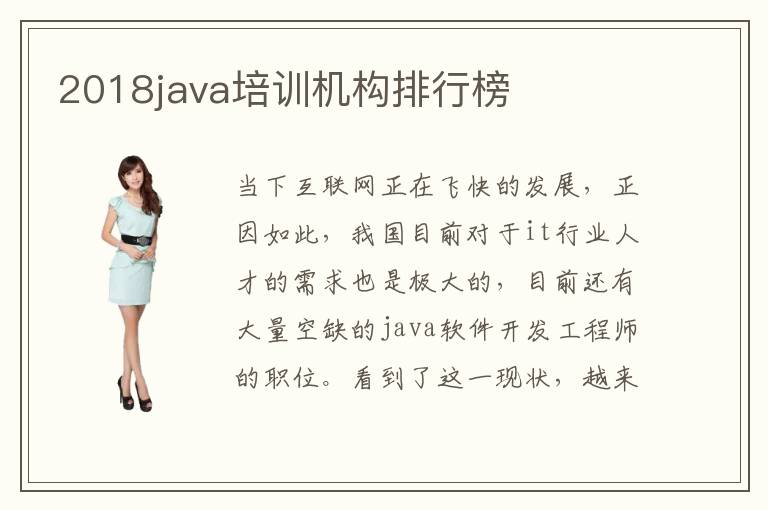 当下互联网正在飞快的发展,正因如此,我国目前对于it行业人才的需求也是极大的,目前还有大量空缺的java软件开发工程师的职位。看到了这一现状,越来越多的人萌生了一种想要学习it专业,进入it行业这样的一个想法。想法很好,但是对于外行人的人来说,选择一个接受教育的培训机构是不容易的,需要谨慎考虑,包括口碑,课程安排以及就业等等问题。2018java培训机构java培训机构排行榜,你知道吗?