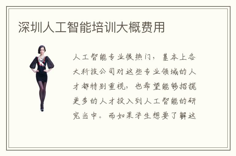 人工智能专业很热门,基本上各大科技公司对这些专业领域的人才都特别重视,也希望能够招揽更多的人才投入到人工智能的研究当中。而如果学生想要了解这些专业,可以多多关注每个人工智能专业的优势和特色,如果实在是没有办法通过自学来提升,可以考虑人工智能培训的机构。深圳人工智能培训大概费用可能在2000~5500元,当然这些课程内容有很多,在选择的时候,应该要考虑多种人工智能培训的方案、培训质量、教学水平等等。深圳人工智能培训大概费用多少,如果是高端人工智能的项目,那么人工智能培训的大概费用会上涨,主要原因是难度比较高,学习时长也会相应延长,自己要去预留充分的学习时间。深圳人工智能培训大概费用影响因素要看各种课程类型,包括兴趣班、业余爱好班、专业速成班等等。