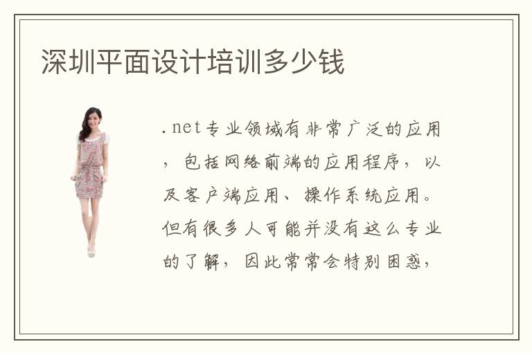 .net专业领域有非常广泛的应用,包括网络前端的应用程序,以及客户端应用、操作系统应用。但有很多人可能并没有这么专业的了解,因此常常会特别困惑,不知道怎么样才能够优化自身的能力。这种情况下,可以多关注各种不同平面设计培训方法、培训特色、培训优势等等内容,根据自己的专业要求和需求来进行培养。深圳平面设计培训多少钱,可能在3000元到8600元,但如果是选择更高端的培训项目,这些费用可能就会存在很大区别。深圳平面设计培训多少钱可以考虑,要考虑清楚个人的基础,再看一下平时的时间安排,才能够作出决定。深圳平面设计培训多少钱靠谱,如果选择业余班,时间安排自由,那么费用也会比较低,比如有些人选择两个月的业余班,可能费用只需要3500元到5000元即可。