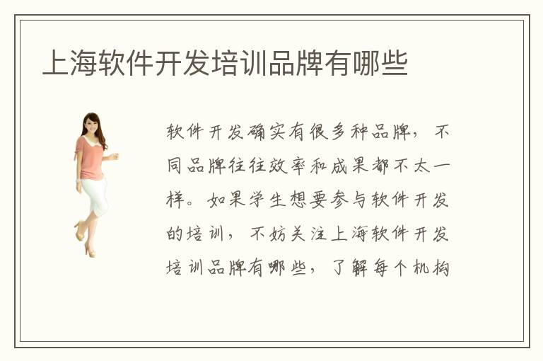 软件开发确实有很多种品牌,不同品牌往往效率和成果都不太一样。如果学生想要参与软件开发的培训,不妨关注上海软件开发培训品牌有哪些,了解每个机构的优势以及具体的教学质量、教育口碑等等,然后再结合自己的缺陷和需要弥补的地方来进行考虑。上海软件开发培训品牌有哪些可以保证成果,如果品牌更有优势,资源丰富,而且资源配置也非常齐全,那么就能够将各种实际的应用呈现给学生,让学生理解力更强,未来进步也许更大。上海软件开发培训品牌有哪些靠谱呢,其实要找到更有优势、专业水平,更高理论知识和实践应用融合度更好的学校类型。有些软件开发培训学校只注重于理论,还有些学校更侧重于实践,每一个学校的擅长之处以及特色都不同,要选择综合能力更强的机构。