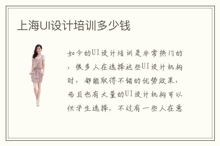 如今的UI设计培训是非常热门的,很多人在选择这些UI设计机构时,都能取得不错的优势效果,而且也有大量的UI设计机构可以供学生选择。不过有一些人在意这些机构学习的时候,很担心成本太高,那么自己的经济会有压力。那么可以先关注上海UI设计培训多少钱,了解大概的报名费用和收费标准。上海UI设计培训多少钱是值得选择的,UI设计培训的费用应该是不太一致的,有些课程内容可以设置的比较先进,也能紧随时代的发展,因此收费费用会贵一点。上海UI设计培训多少钱介绍,但有些基础性的课程内容可能收费标准不需要太高,所以大家不要担心,可以先看自己的实际能力。但如果不知道如何决定,可以先通过培训机构的学前评测,然后根据自身的能力以及基本的分数确定课程内容。