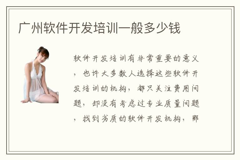 软件开发培训有非常重要的意义,也许大多数人选择这些软件开发培训的机构,都只关注费用问题,却没有考虑过专业质量问题,找到劣质的软件开发机构,那么效率会比较低。大家可以多了解广州软件开发培训一般多少钱,也要多关心不同软件开发培训机构的优劣之处、培训的效果和专业能力等等。广州软件开发培训一般多少钱合适,如果是一些基础性的课程,其实大多数软件开发培训机构的费用都是非常低的,可能需要1000到2000就可以完成这些课程。广州软件开发培训一般多少钱可以考虑,但由于每个人选择的课程方案以及个人的能力等等都不太一样,因此并不能够一概而论,那应该要多多关注个人的能力来进行挑选,如果能力比较强,可以选择更高端的软件开发课程,其实都没学会可能是5000~8000。
