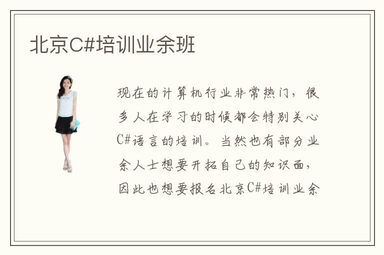 现在的计算机行业非常热门,很多人在学习的时候都会特别关心C#语言的培训。当然也有部分业余人士想要开拓自己的知识面,因此也想要报名北京C#培训业余班,通过一些业余的知识培训,也能掌握更多关于C#知识内容。北京C#培训业余班效率如何,其实培训班是非常效率的,C#培训专业学习的学生往往没有太多经验和时间,那么培训业余班会针对不同学生来制定课程,因此效率更高,也能为大家提供更多有益的C#专业课程内容,未来应用更广泛。北京C#培训业余班知识多,而且培训业余班其实也可以掌握很多前沿的知识,因为C#培训机构也会针对学生的兴趣所在,将有用的先进的知识传授给培训学员。如果学生对这方面感兴趣,那么学得更快,而且也能找到生活中的很多乐趣。