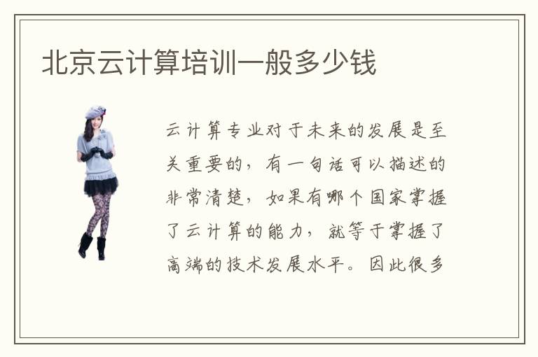 云计算专业对于未来的发展是至关重要的,有一句话可以描述的非常清楚,如果有哪个国家掌握了云计算的能力,就等于掌握了高端的技术发展水平。因此很多人也希望能够掌握这些前沿的科技,那么未来就可以得到更好的发展前景。因此也有大量的学生争先恐后,想要报名北京云计算培训,得到更好的进步,那么大家可以了解一下北京云计算培训一般多少钱,然后做出自己的报名决定。北京云计算培训一般多少钱啊,要看课程内容、云计算专业的水平、云计算课程教学的质量。因为每个学校的培养方案、培训课程内容以及云计算培训老师的水平等等,都会有很大差异,因此效果和费用等等都有区别。北京云计算培训费用可能是3000元到3万元不等,主要是有些云计算培训老师确实拥有不错水平,专业能力强,教学的质量更有保障。